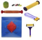LRK Acupressure Power Mat, Wooden Roller, Massage Rollers, Hand and Foot Sujok Finger Rings (Combo pack of 7) Acupressure SuJok Ring is a good medium of a treat mant which you have to put in your finger, this Suzak ring will massage your finger very well, make it five to five times in both hands, The pain of hand and head will end completely. Power Mat – TOP – SELLING PAIN RELIEVER: It is a new computerized design with energy centre, pyramid yantra orbit and innovative new foot shape design to cover all important pressure points. Warm up your Body by jogging for three to five minutes daily. Morning freshness with total health. Also gives relief in sciatica, leg pain, cramps, heel pain, knee pain, piles, migraine, sinus, insomnia, constipation, gastric, acidity, diabetes, indigestion & renal problems | Sujok Ring (Silver) – For pressure of your Fingers Points. Use: Roll it in finger with mild pressure. Designed for thorough stimulation of the finger toes. Regular application enhances your blood circulation & promotes effectiveness on the organ at large. | Energy Ball (Wooden) – For special points of your Hands, Foot and Body. Roll in your hands for 5 to 10 minutes daily. Best for middle part of palm & finger relaxation. Stimulates acupressure points activates blood circulation, tiredness, freshness, effective in shoulder pain & total health. This is in pyramidal ball shape. hence it is known as energy-ball. | Acupressure Jimmy – Wooden – For special Su-Jok points f your finger.